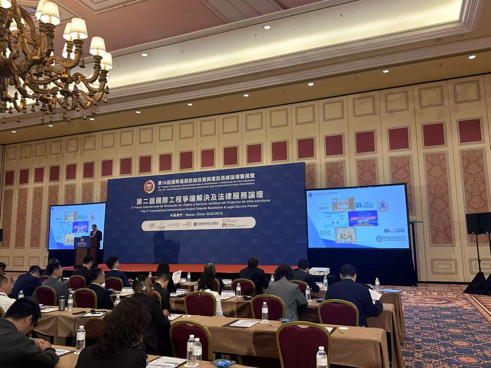 2025 оны 6 дугаар сарын 12-ны өдөр БНХАУ-ын Макао хотноо “Олон улсын дэд бүтцийн төслийн маргаан шийдвэрлэл ба хууль зүйн үйлчилгээний хоёрдугаар форум” амжилттай зохион байгуулагдлаа. Энэхүү арга хэмжээ нь Олон улсын дэд бүтцийн хөрөнгө оруулалт, барилгын 16 дугаар дээд хэмжээний чуулга уулзалтын хүрээнд болж өнгөрсөн юм.